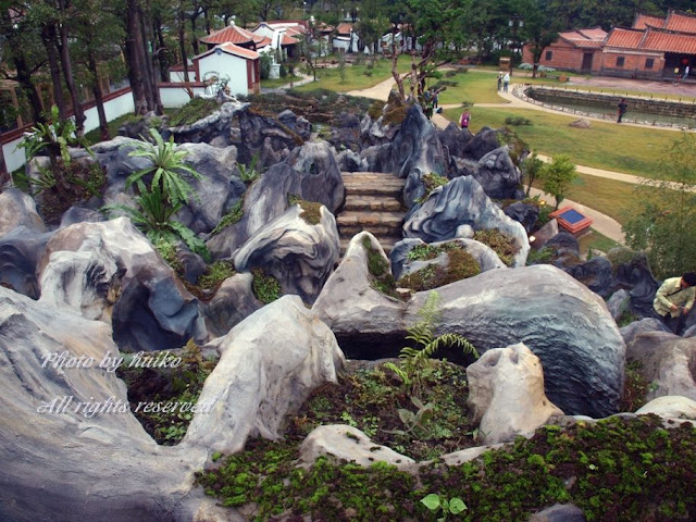 以現代的建材建成閩式庭園的泥塑假山,源自道家『法自然』。