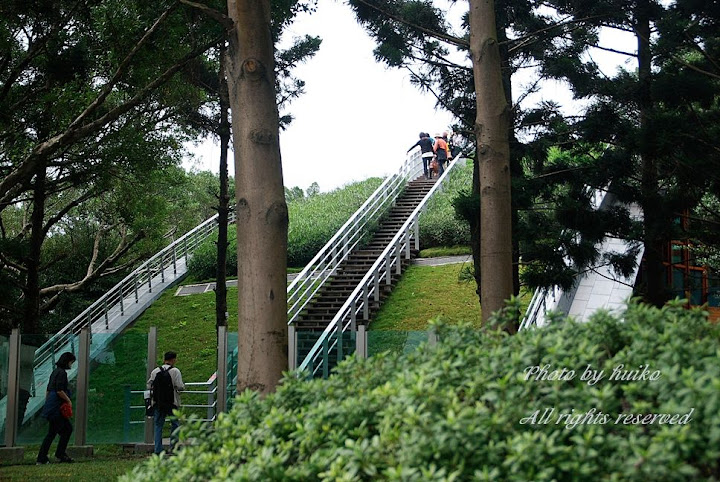 這是青青步道的入口,就是在已獲得鑽石級綠建築候選證書的天使生活館及未來館上,